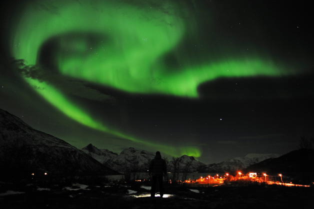 La aurora polar o "aurora polaris" es un fenómeno en forma de brillo que aparece en el cielo nocturno de las zonas polares tiñendo de colores la noches que concurren entre el equinocio de otoño y el de primavera (21 de septiembre al 21 de marzo).