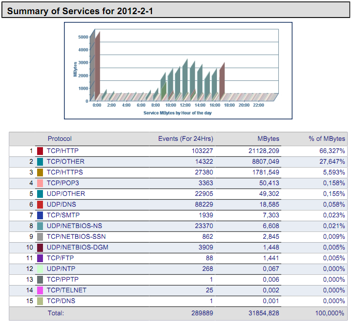 Esta nueva herramienta informa diariamente al departamento de sistemas del número de conexiones entrantes y salientes, número y tipo de ataques recibidos, consumo de ancho de banda total, sitios web más visitados, equipos que más ancho de banda consumen y tipos de tráfico con un apartado especial al tráfico FTP y al tráfico de correo electrónico.