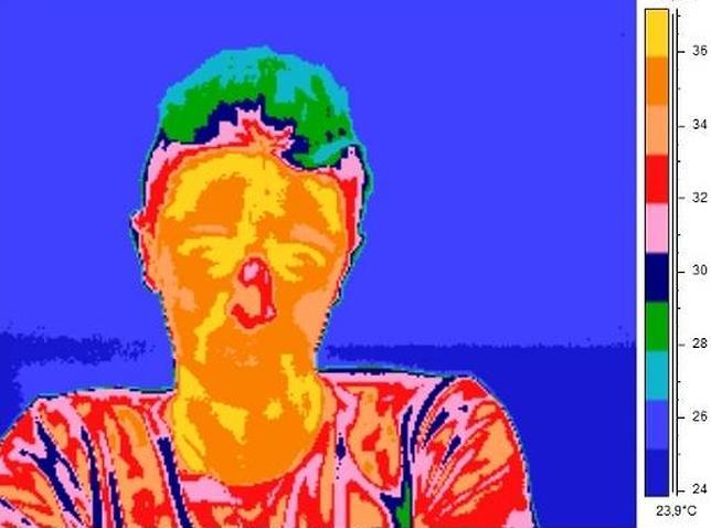 Los investigadores de Psicología Experimental de la Universidad de Granada, Emilio Gómez Milán y Elvira Salazar López, han señalado que cuando los humanos realizan un gran esfuerzo mental, la temperatura de la nariz desciende, y en cambio, cuando se sufre un ataque de ansiedad, se experimenta un ascenso general de la temperatura facial.