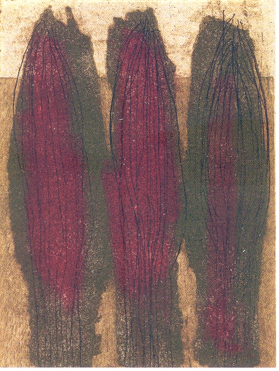Un paseo detenido por la Sala nos mostrará diferentes etapas de su obra crectiva. Cada una de las series, con un título genérico que las agrupa y cataloga responde a diferentes momentos emocionales de la autora. En "Aliento de vida", a la que corresponde la imagen que acompaña este texto, el impulso creativo y de investigación con materiales y técnicas diversas acabo generando imágenes sugerentes y emotivas. Plásticos poemas visuales que nos hablan de procesos muy complejos que se adentran en la parte más vital del ser humano, de la interconexión entre cerebro, corazón, Verbo...
