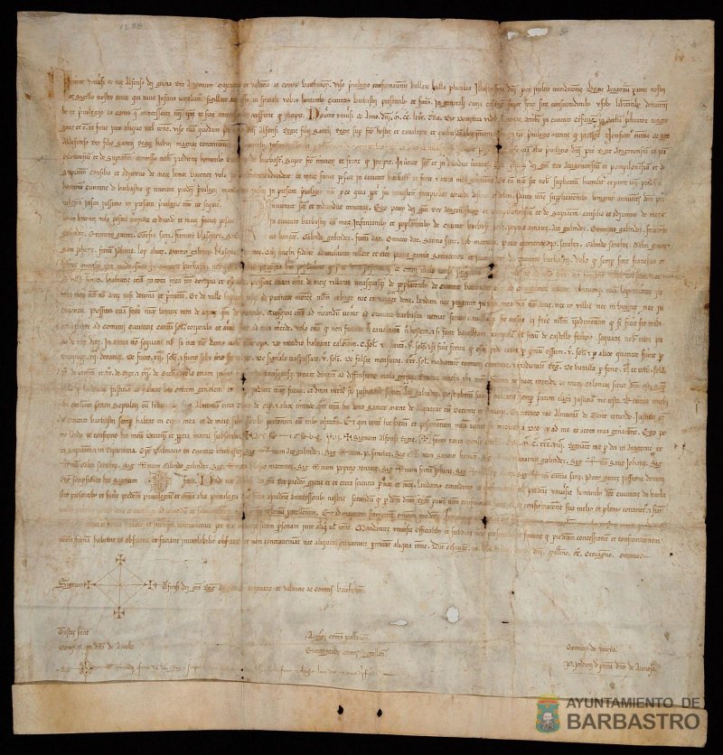 Con motivo de la celebración del Día Internacional de los Archivos el día 9 de junio, el Archivo del Ayuntamiento de Barbastro en colaboración con el Servicio de Archivos de la Comarca de Somontano de Barbastro organizan una exposición de siete pergaminos medievales que se conservan en el archivo municipal de Barbastro y que corresponden al reinado de Alfonso III de Aragón, el más antiguo, y seis al reinado de Jaime II de Aragón.