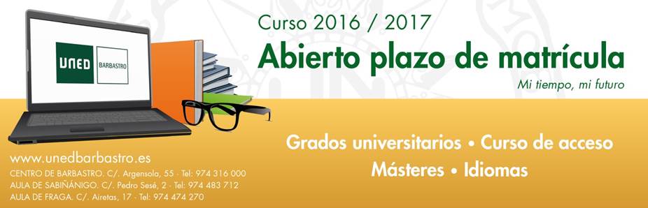 Para el curso académico 2016-17, la oferta de idiomas en la UNED de Barbastro es la siguiente: