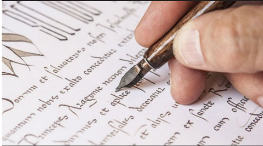 Este curso, dirigido a cualquier persona interesada en iniciarse en la caligrafía histórica, pretende recuperar y mantener la manualidad en la era del ordenador. La caligrafía es una disciplina que da perspectivas y conocimientos paralelos sobre tipografía e historia del arte. La caligrafía no es sólo el arte de la escritura bella. Es una actividad a medio camino entre el gesto artesanal y el arte. Ofrece infinitas posibilidades de creación. El rigor técnico exigido por la caligrafía no debe esconder el inmenso placer aportado por su práctica al trazar gruesos y finos, ornamentos y volutas, filigranas y entrelazos; elegir colores y papeles; redescubrir las soberbias caligrafías que la escritura nos ha legado: UNCIALES, ROMÁNICAS, GÓTICAS, RENACENTISTAS...crear su propia composición para resaltar textos y citas. Tiene por ambición alcanzar la expresión artística.