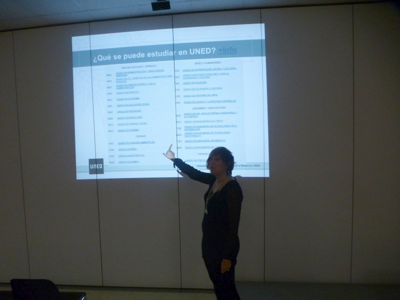 Presentación de los estudios de la UNED en el Colegio Salesianos de Monzón a cargo de Pilar Carrero, responsable del aula de Fraga.