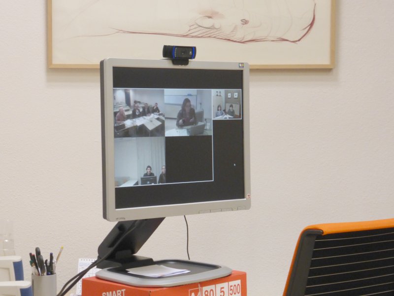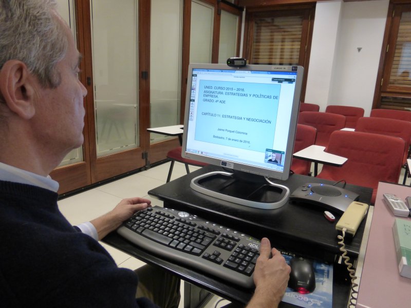 Grabación de tutoría intercampus para alumnos de 4º del grado de Administración de Empresas, a cargo del tutor Jaime Porquet, en la UNED de Barbastro.