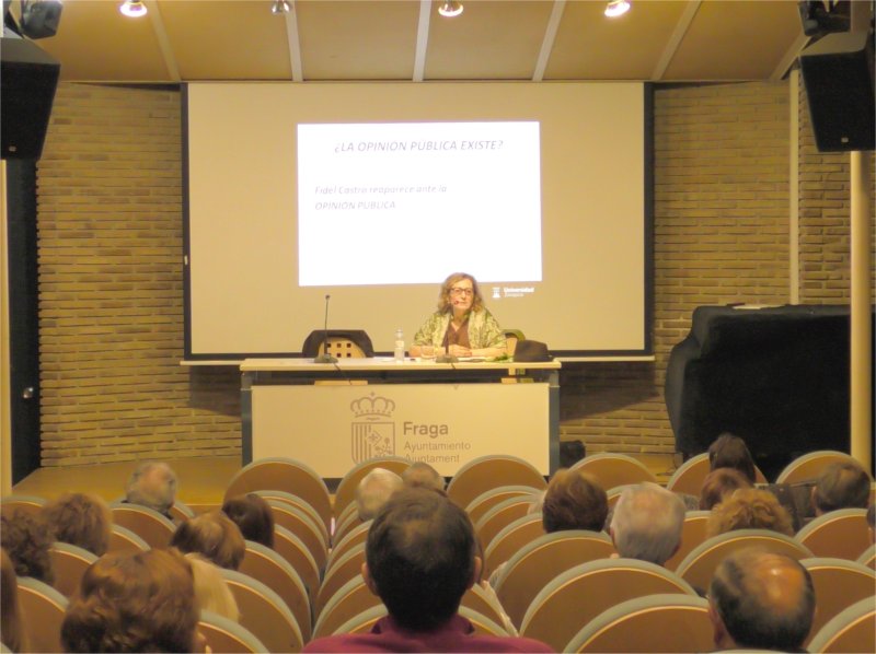 Conferencia "¿La opinión pública existe?", impartida por María Guadalupe Gómez y Patiño, en el palacio Montcada de Fraga.