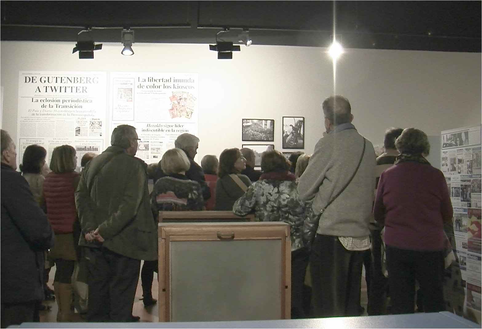 Visita de los alumnos de la Universidad para Mayores de Sabiñánigo al Centro de Historias de Zaragoza para visitar la exposición "De Gutenberg a Twitter" guiados por el comisario de la muestra Rafael Bardají.