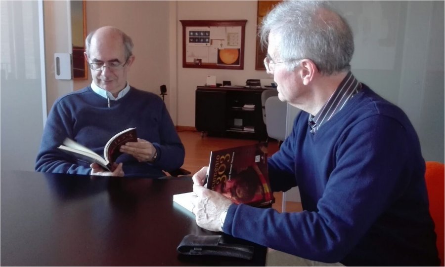 Entrega de un ejemplar del libro de José Manuel Surroca "El documento 303" a la Biblioteca de la UNED de Barbastro.