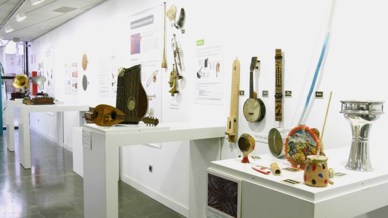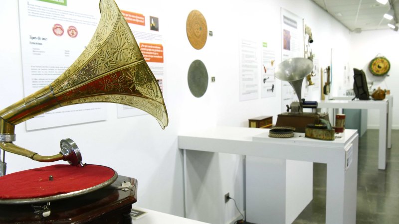 OBJETOS que muestran aspectos fundamentales de esta relación: la evolución de los sistemas de grabación y reproducción sonora, los materiales empleados en la construcción de instrumentos musicales, efectos especiales sonoros, instrumentos y formas de crear sonido (lengüetas, parches, cuerdas...) o amplificarlo a través de las diversas cajas de resonancia...
