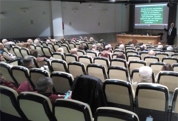 Seguimiento desde la UNED de Sabiñánigo de la conferencia "Los números del universo", impartida por Carlos Gómez Mur, en la UNED de Barbastro.