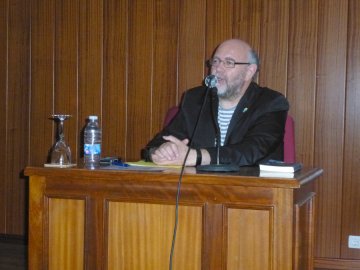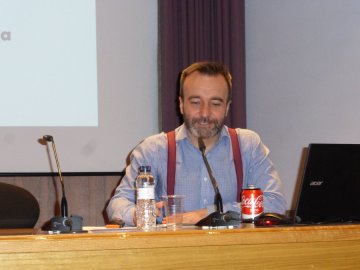 Antón Castro impartiendo la lección de clausura "Letras aragonesas: de Jarnés a Martínez de Pisón" del curso de la Universidad de la Experiencia en Sabiñánigo.