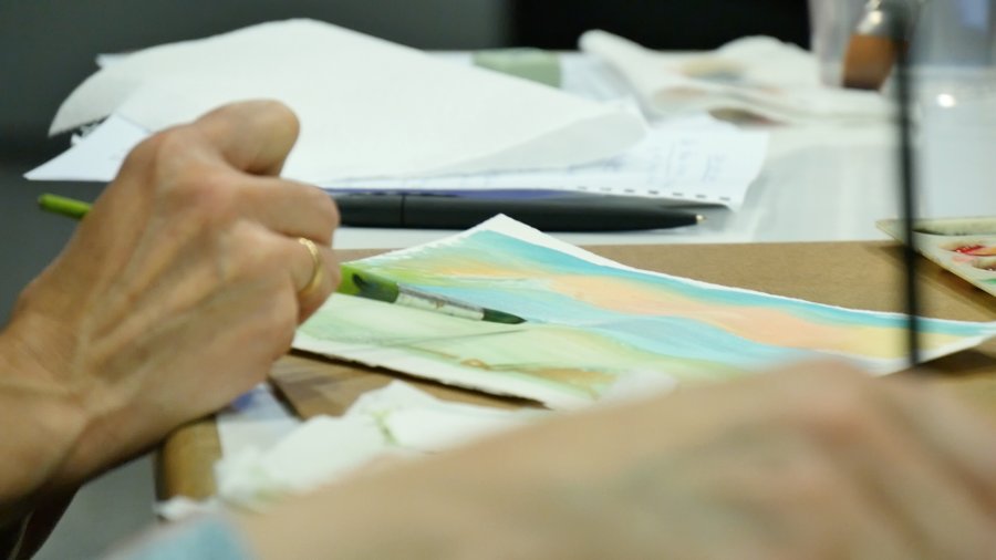 Taller de acuarelas, impartido por Lina Vila, en la UNED de Barbastro.