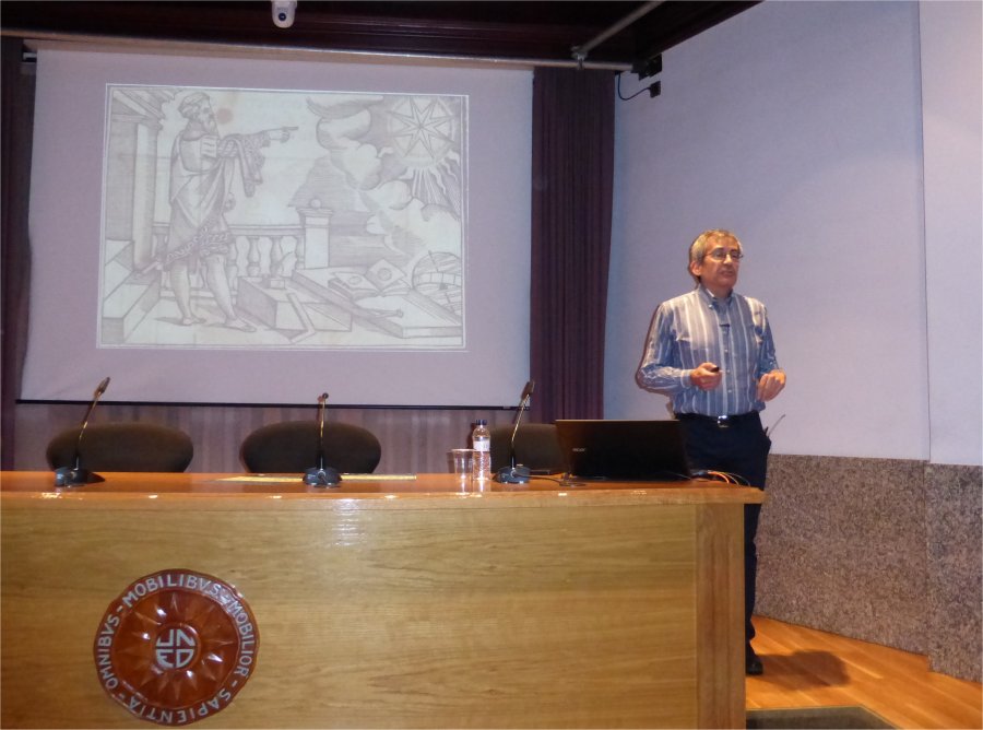 Conferencia "Martín Cortés y su arte de navegar", impartida por el historiador Carlos Garcés, en la UNED de Barbastro.