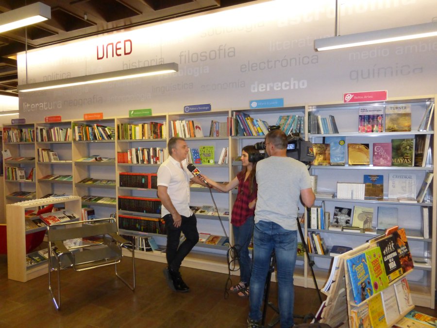 Entrevista al poeta y narrador barbastrense Manuel Vilas en la librería Valentina Cancer de la UNED de Barbastro.