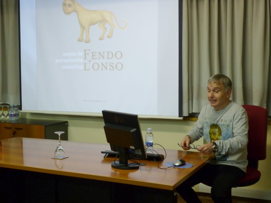 Presentación del libro "Fendo l'onso asayos de antropolochía zoolochica" de Rafael Vidaller en la UNED de Sabiñánigo.