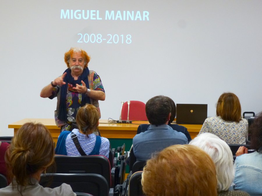 Visita guiada a la exposición "Percepciones en el tiempo" por el autor Miguel Mainar en el Aula de la UNED en Sabiñánigo.