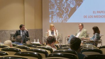 Mesa redonda "Periodismo, mentiras y redes sociales" con Encarna Samitier, Javier Gallego y David Lafuente, en el curso "España: retos y oportunidades. 40 años de Constitución".