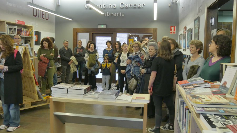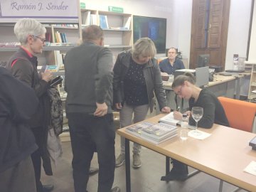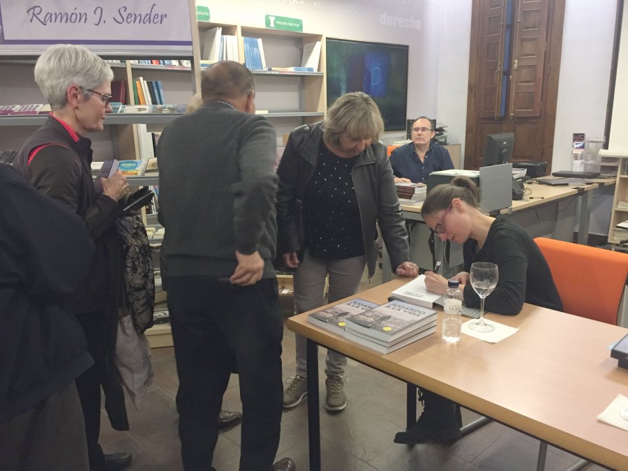 Firma de ejemplares en la presentación del libro "Jugando a la vida" de Àlex Martin, en la librería Valentina Cancer de la UNED de Barbastro.