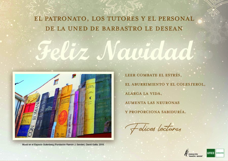El patronato, los tutores y el personal de la UNED de Barbastro le desean Feliz Navidad.