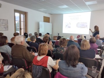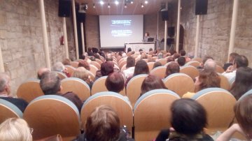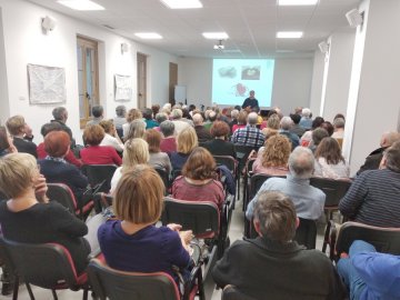 Conferencia "La huella del ADN en la evolución de la vida", impartida por María Victoria Arruga, en el palacio Montcada de Fraga.