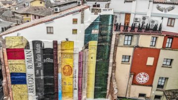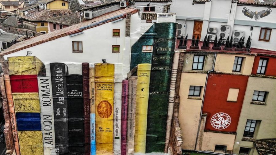 Mural del espacio Gutenberg de la UNED de Barbastro a vista de pájaro.