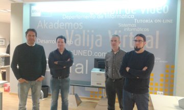 La Valija Virtual de la UNED de Barbastro premiada por su Calidad e Innovación en la Gestión Pública. Equipo responsable de la Valija Virtual, en Barbastro, formado por José María Ger, Jesús Abizanda y Román Morillo, en el análisis, diseño y desarrollo, Chusé I. Escudero en el soporte.