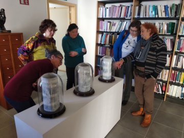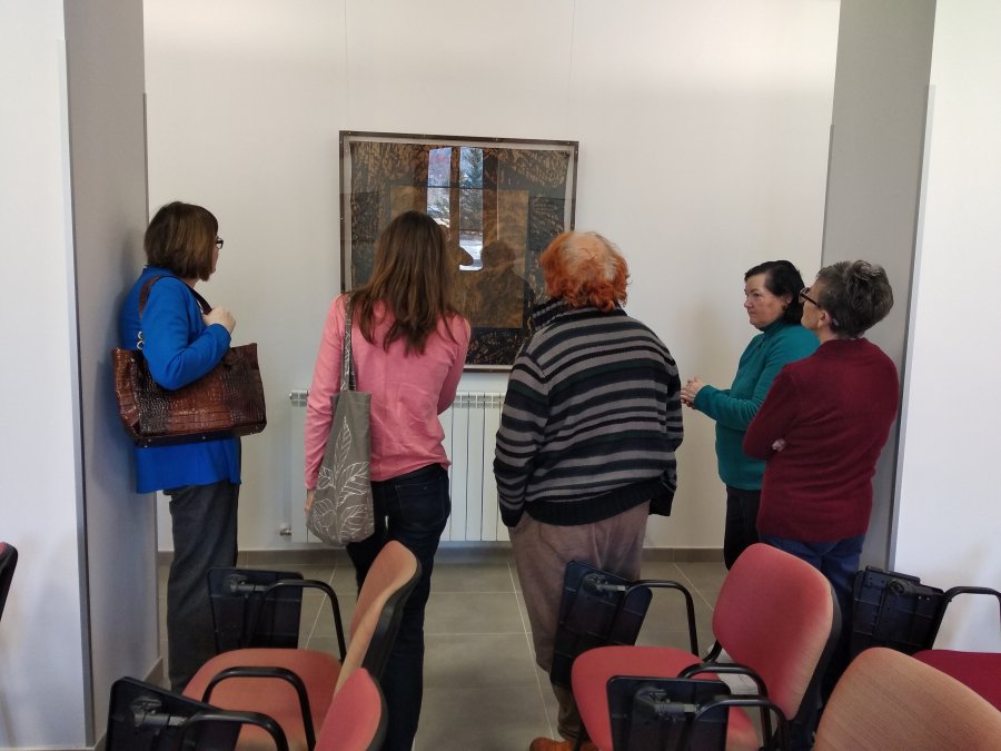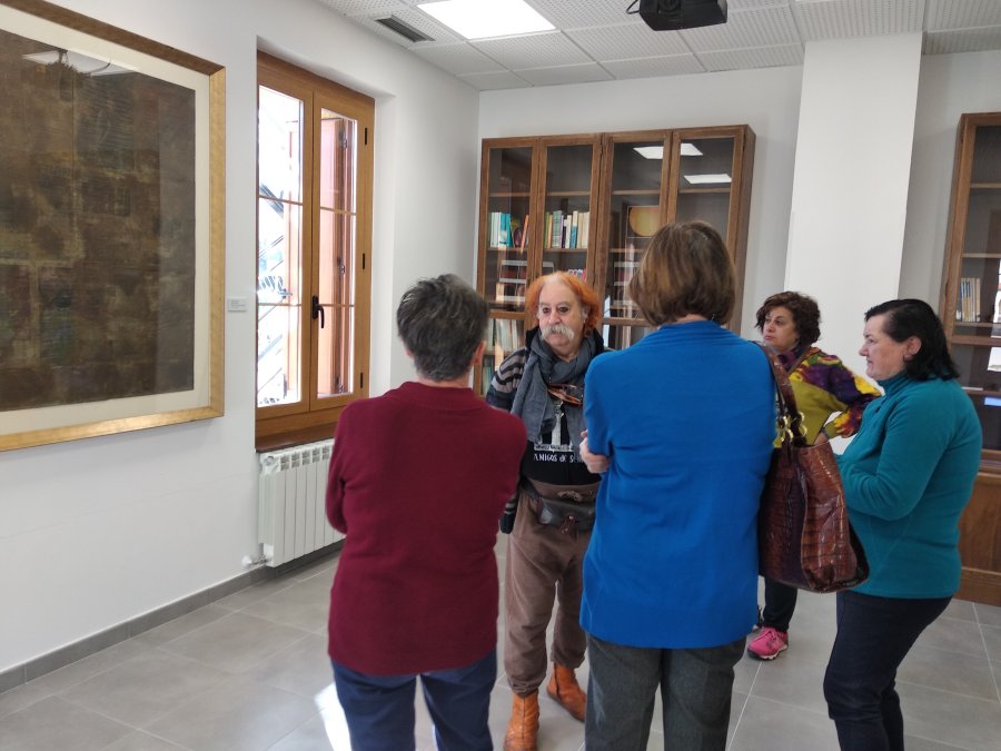 Visita a la exposición "Percepciones en el tiempo" con el autor Miguel Mainar de miembros de ASAPME, en la UNED de Sabiñánigo.