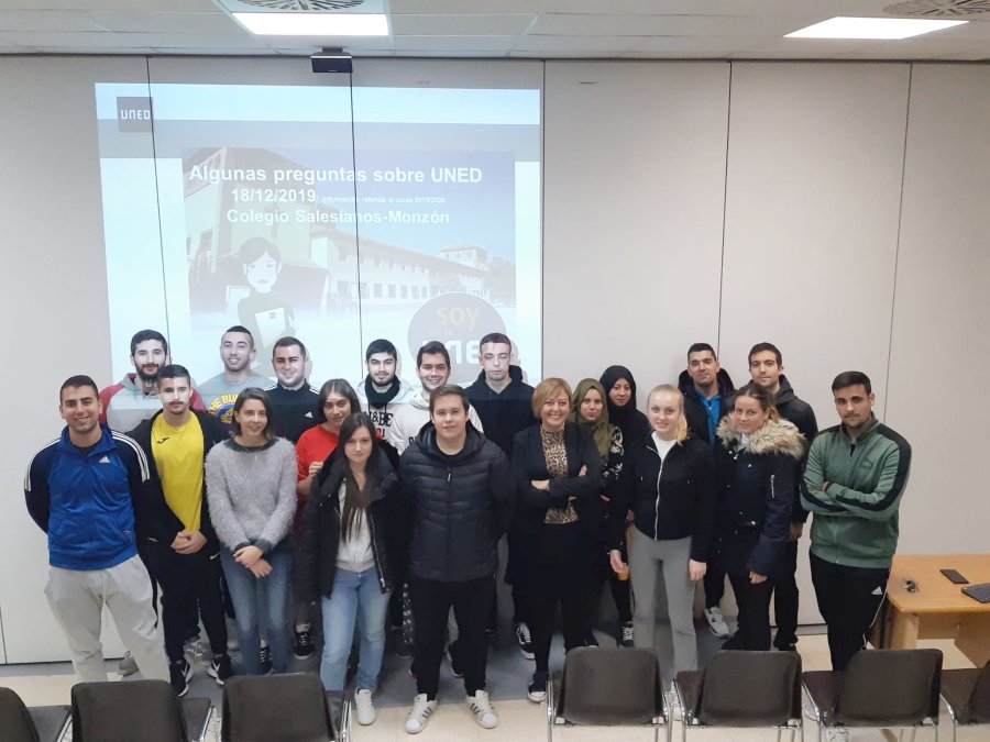Presentación de la UNED en el Colegio Salesianos de Monzón, a cargo de Pilar Carrero.
