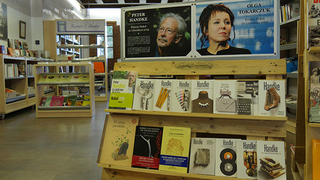 Con motivo de la reciente entrega de los Premios Nobel de Literatura 2018 y 2019, la librería Valentina Cancer de nuestro centro ha preparado un expositor con los mejores libros editados en lengua castellana del novelista austríaco Peter Handke galardonado en la edición del 2019 y de la escritora polaca Olga Tokarczuk ganadora del Nobel en la edición anterior