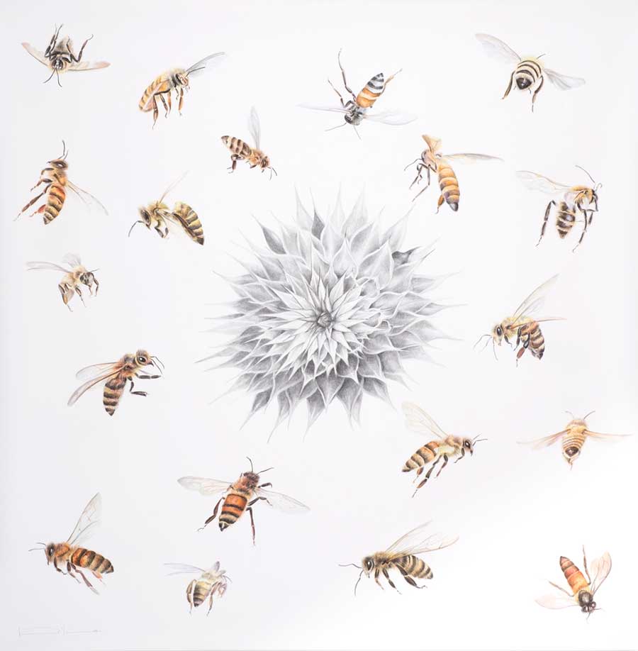 Lina Vila “Todos afanados como insectos procurando una compañía”, lápiz y acuarela sobre papel, 113 x 113cm, 2019.