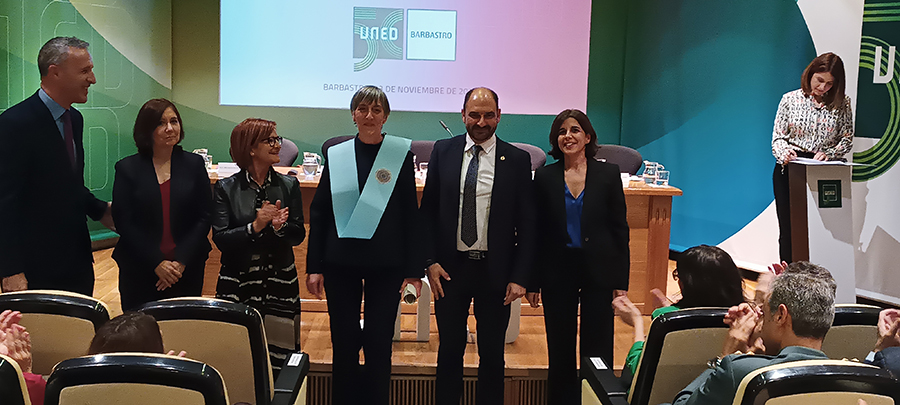 El Centro de la UNED de Barbastro ha inaugurado el Curso Académico 2022-2023 con un acto solemne presidido por el vicerrector de Centros Asociados de la UNED, Jesús de Andrés, junto al presidente del Consorcio Ramón J. Sender y alcalde de Barbastro, Fernando Torres, la directora general de Universidades del Gobierno de Aragón, Yolanda Sancho, la delegada de Cultura de la Diputación Provincial de Huesca, Maribel de Pablo, y la directora del Centro de la UNED de Barbastro, Ángeles Pérez.
