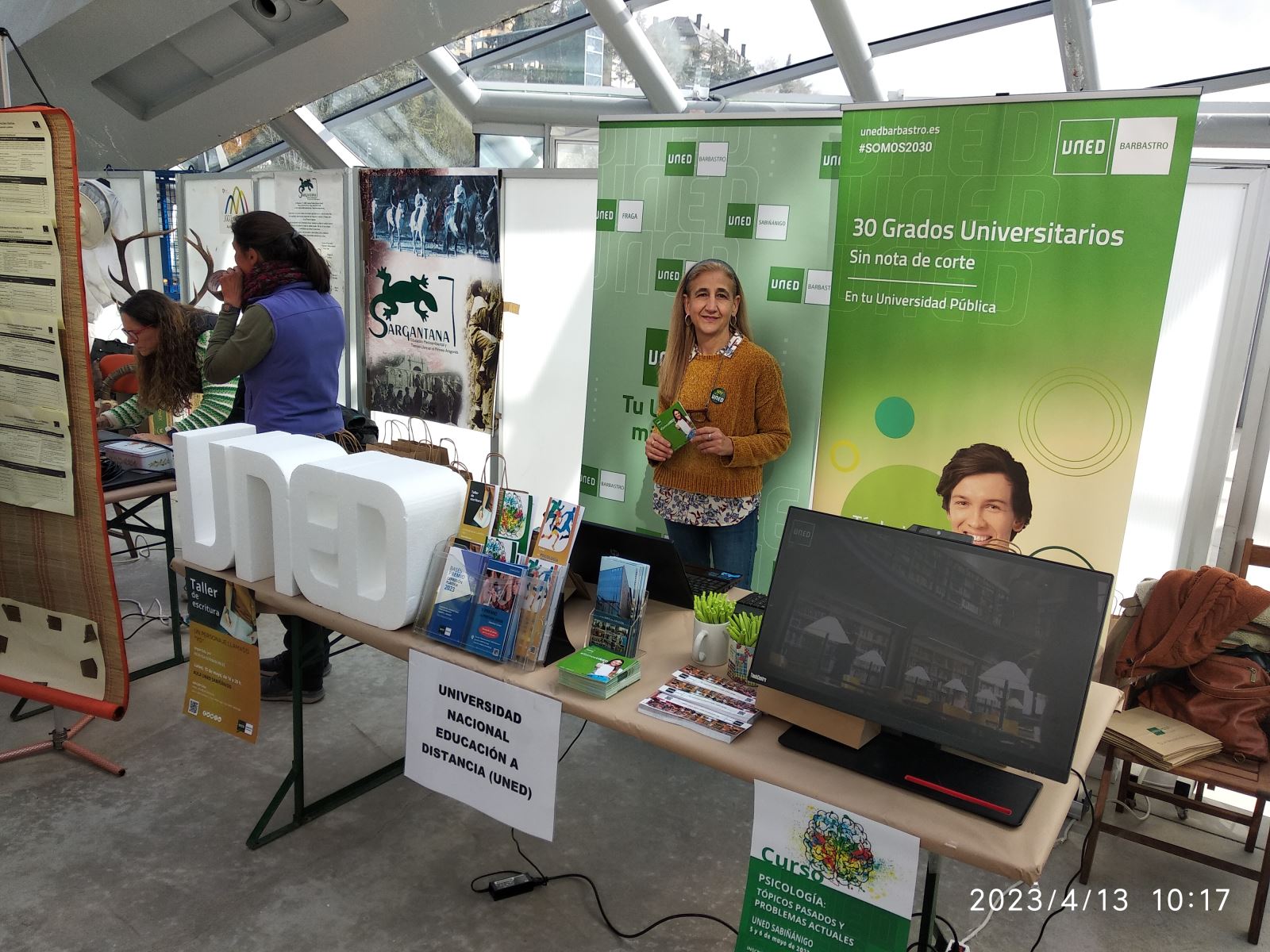 La Feria de oportunidades formativas a tu alcance, organizada por la Comarca de la Jacetania, con la colaboración del Ayuntamiento de Jaca y de la Comarca Alto Gállego, ha contado, en esta primera edición, con la participación de la mayoría de los centros educativos y entidades formativas de ambas comarcas. La UNED ha participado con una mesa informativa en la que ha presentado su oferta educativa y en concreto los servicios que se prestan en el Aula de Sabiñánigo, así como la propuesta de actividades de extensión universitaria.