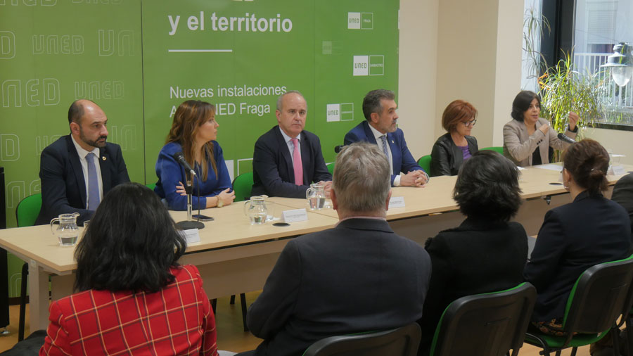 La Universidad Nacional de Educación a Distancia ha inaugurado este jueves las nuevas instalaciones del Aula de la UNED de Fraga, dependiente del Centro de Barbastro. En el acto han intervenido el rector, Ricardo Mairal, el alcalde de Fraga, Santiago Burgos, la consejera de Ciencia, Universidad y Sociedad del Conocimiento del Gobierno de Aragón, María Eugenia Díaz, la delegada de Cultura de la DPH, María Isabel de Pablo, el alcalde de Barbastro y presidente del Consorcio Universitario UNED Barbastro, Fernando Torres, y la directora del Centro de la UNED, Ángeles Pérez.
