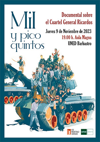 El día 9 de noviembre a las 19:00 horas se presentará el documental Mil y pico quintos en el Aula Magna de la UNED de Barbastro, trabajo realizado por el alumnado del ciclo de Realización de Proyectos Audiovisuales y Espectáculos.