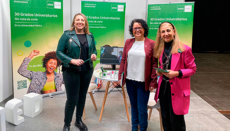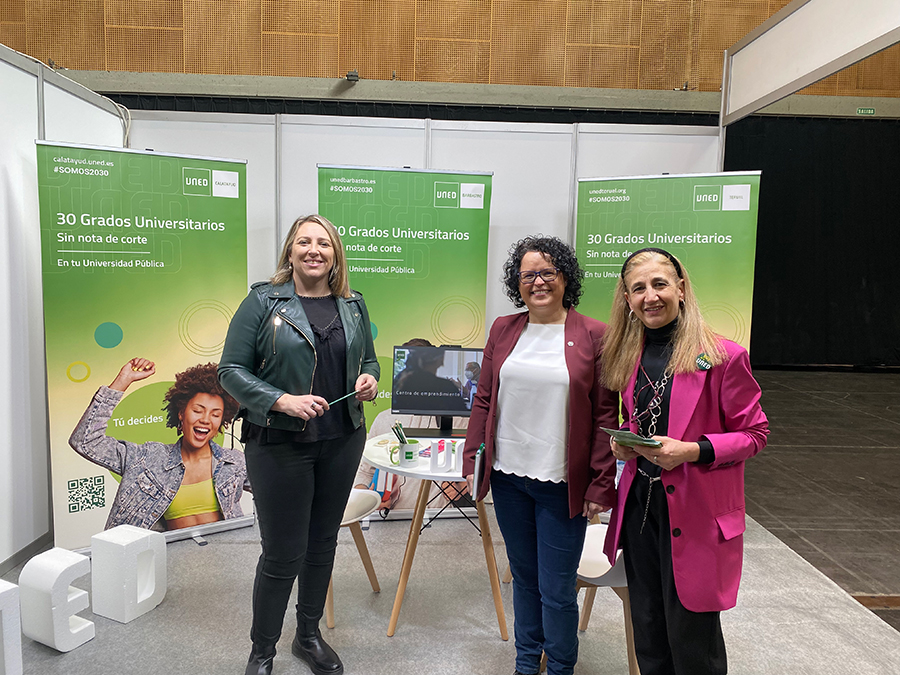 Laura, Marta y María Jesús están ofreciendo, a los estudiantes de nuestra Comunidad, información y orientación sobre la UNED, su oferta académica y metodología de estudio.