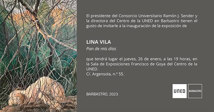 Lina Vila nace en Zaragoza en 1970. Estudia bellas Artes en Barcelona donde se licencia en 1994. Realiza el postgrado: “El dibujo como instrumento científico” y el postgrado: “La obra gráfica hoy: de la impronta grabada a la impronta digital” en la Universidad de Barcelona. Obtuvo la beca de Artes Plásticas “Casa de Velázquez” de 2002 a 2004. Ha realizado numerosas exposiciones individuales y colectivas en España, Italia, Alemania, Portugal y Francia. Actualmente trabaja con la galería La Casa Amarilla en Zaragoza. Su trabajo se ha basado desde sus inicios en una reflexión sobre la fugacidad y la fragilidad del ser humano llevado a cabo a través de distintas técnicas y procedimientos como el dibujo, la pintura, el grabado, la fotografía o la instalación.