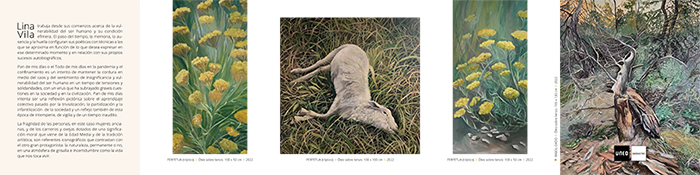 Lina Vila trabaja desde sus comienzos acerca de la vulnerabilidad del ser humano y su condición efímera. El paso del tiempo, la memoria, la ausencia y la huella configuran sus poéticas con técnicas a las que se aproxima en función de lo que desea expresar en ese determinado momento y en relación con sus propios sucesos autobiográficos.