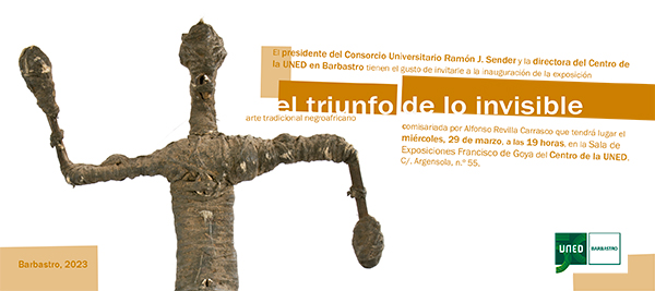 El triunfo de lo invisible propone un primer acercamiento al arte negroafricano a un conjunto de piezas que muestren la riqueza y variedad de los objetos artísticos negroafricanos toano desde la tipología formal como la funcional. África desde sus representaciones artísticas se afirma con una belleza serena, firme, poderosa; una belleza contundente y abierta de la que se emana una autoridad que no permite poner en duda su contribución a la historia universal del arte. Son obras capaces de manifestar un moda de vida, una forma de comprensión profunda del ser humano y su interación con el entorno a tráves de un sistema rizomático de creencias.