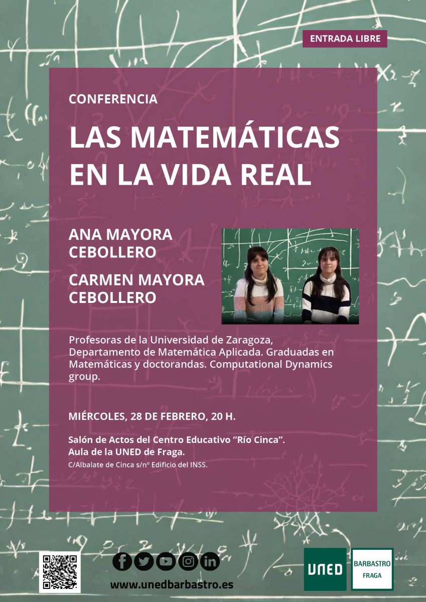 Ana Mayora Cebollero y Carmen Mayora Cebollero. Profesoras de la Universidad de Zaragoza, en el Departamento de Matemática Aplicada. Graduadas en Matemáticas y doctorandas. Computational Dynamics group.