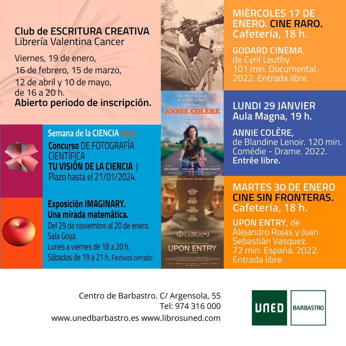 Agenda de actividades programadas para este mes de enero en la UNED de Barbastro.