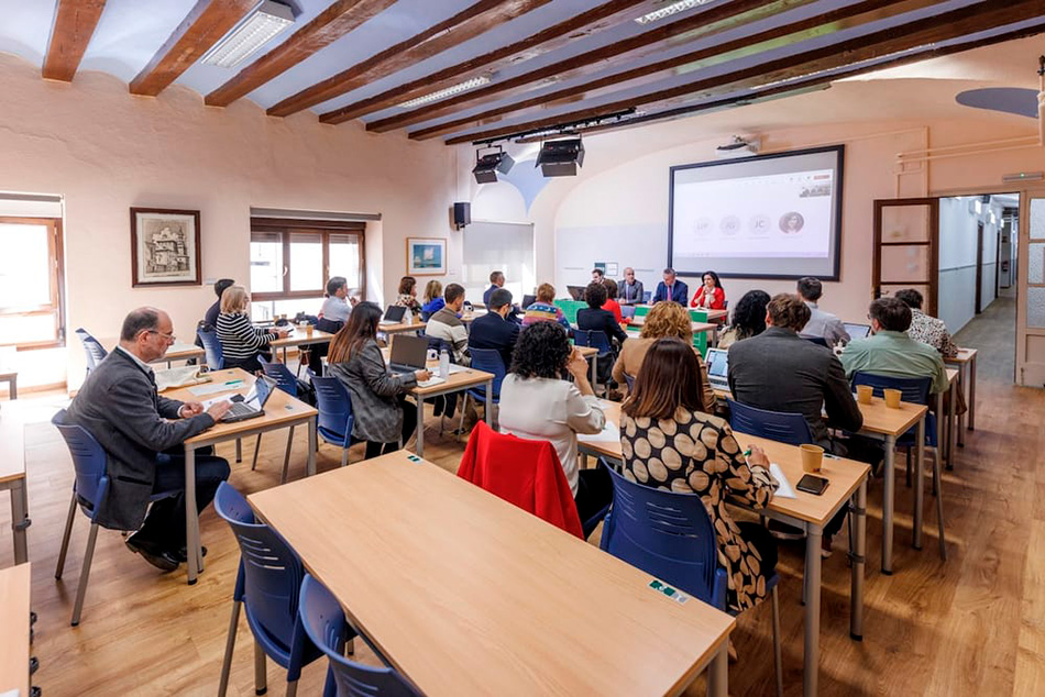 “Equipos directivos y representantes de los centros del Campus Nordeste de la UNED en las sesiones de trabajo”.