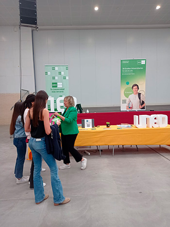 UNED Barbastro participó en este encuentro dando a conocer su oferta educativa que abarca desde el nivel 0 hasta el doctorado, contribuyendo significativamente a la fijación de población en la región, y con la experiencia de grandes profesionales que, además de ser tutores en el centro, trabajan en diferentes áreas de conocimiento (Ingeniería Industrial, Ingeniería Informática, Abogacía, Profesora de secundaria…), y que conversaron con los estudiantes sobre su trabajo o los estudios necesarios para obtener la titulación que les interesa.