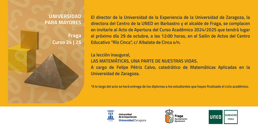 Acto de Apertura del Curso Académico 2024/2025 de la Universidad para Mayores de Barbastro y Fraga.