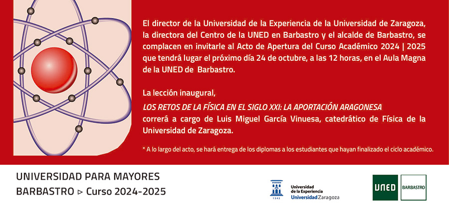 Lección inaugural: Los retos de la Física en el siglo XXI: la aportación aragonesa, a cargo de Luis Miguel García Vinuesa, catedrático de Física de la Universidad de Zaragoza.