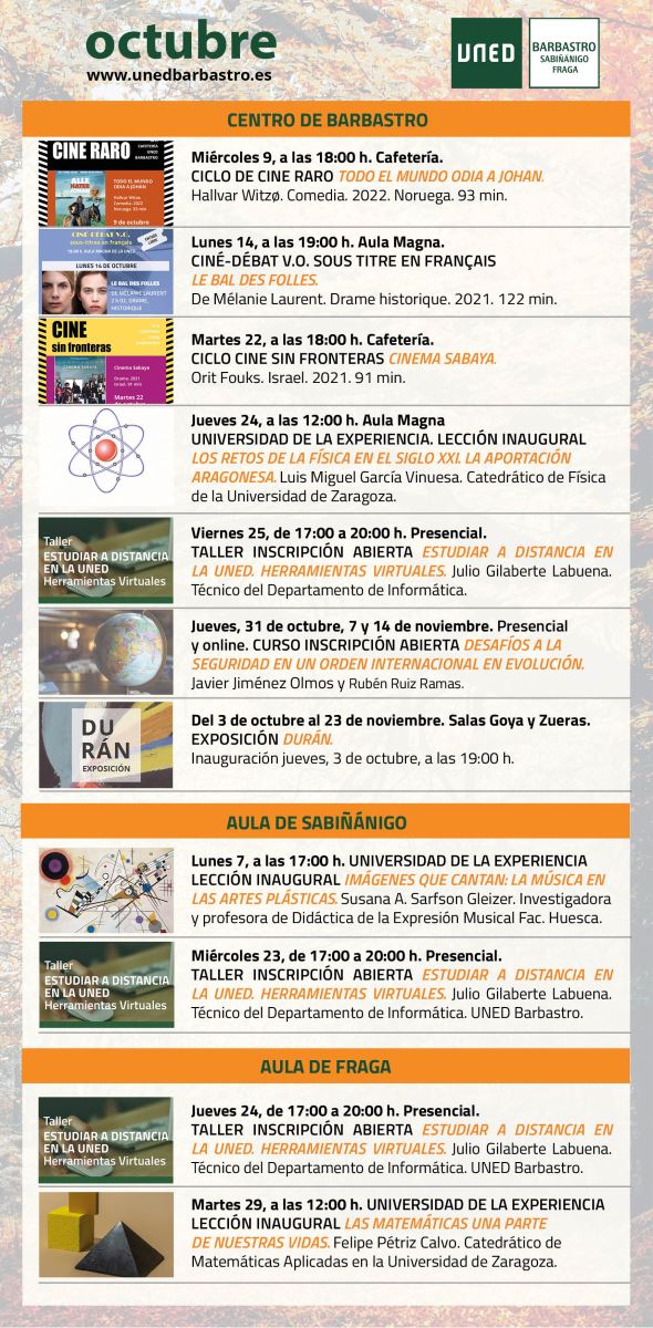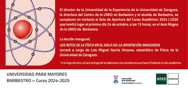 Jueves, 24 de octubre, a las 12 h, en el Aula Magna de UNED Barbastro