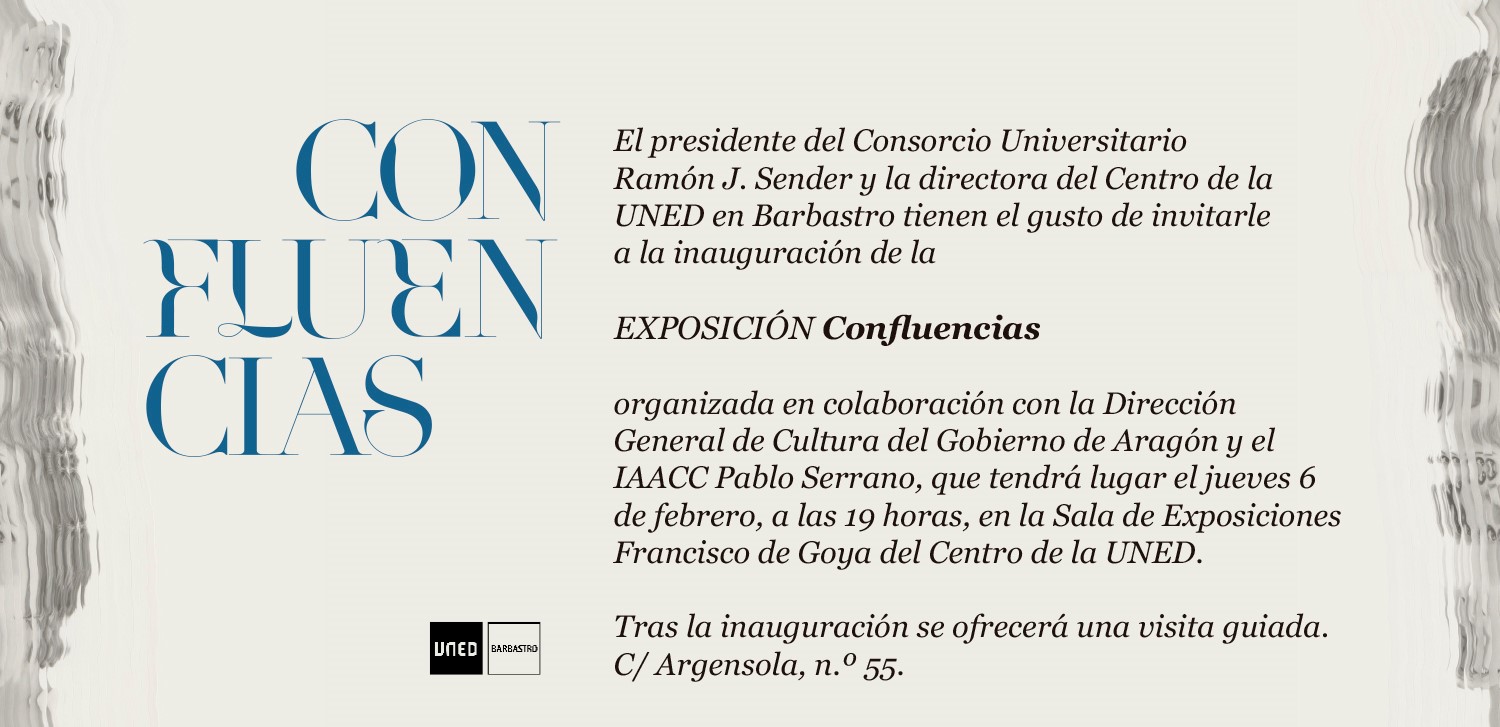 La Sala de Exposiciones del centro de la UNED de Barbastro acoge la exposición Confluencias, producida por el Gobierno de Aragón y desarrollada a iniciativa de PMAC (Plataforma de Mujeres en el Arte Contemporáneo) en el marco de la II Muestra Internacional de Arte Contemporáneo realizado por mujeres.