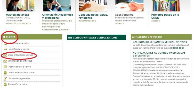 - Cuenta de correo electrónico de estudiante: El usuario podrá activar o desactivar la cuenta de correo electrónico que ofrece la UNED a sus estudiantes.